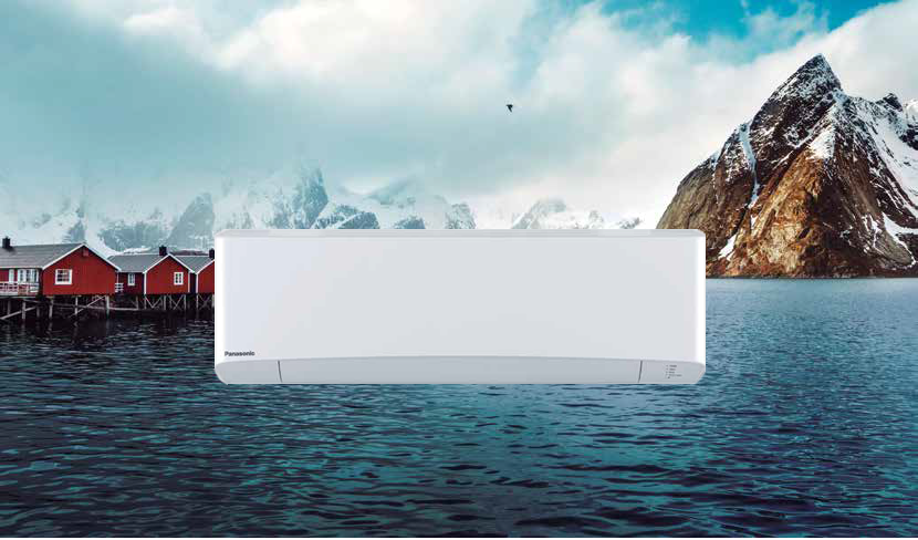 Varmepumpen bygger bare 770 mm på veggen og passer perfekt til nedkjøling. Den har integrert Wifi.